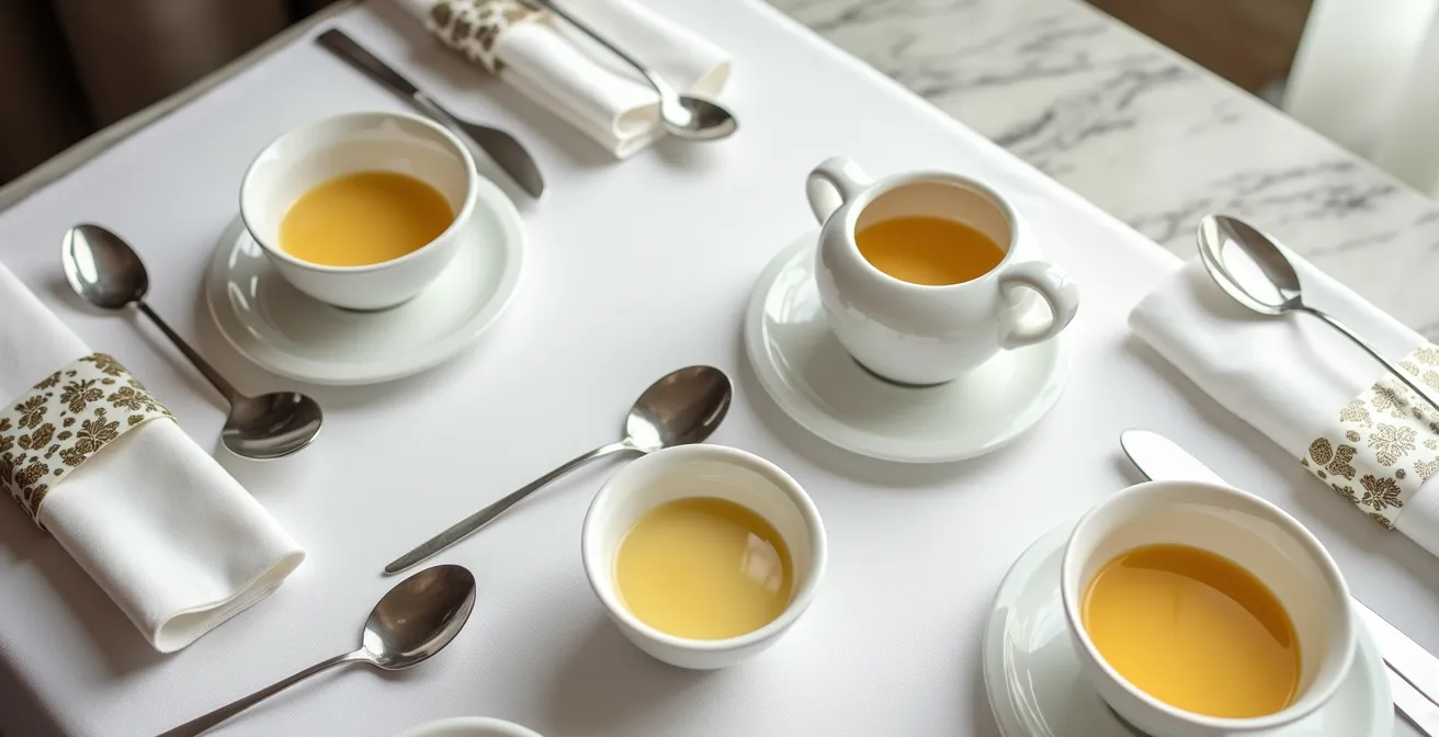 Imaginez un velouté de potimarron onctueux ou un consommé de bœuf limpide et fumant. L’ustensile que vous portez à vos lèvres pour les déguster est bien plus qu’un simple couvert. C’est la première interface sensorielle entre le plat et votre palais. Pourtant, face au choix entre une cuillère au cuilleron (la partie creuse) parfaitement rond et une autre de forme ovale, allongée comme une amande, la plupart d’entre nous se fient à l’habitude ou aux vagues souvenirs des règles de dressage.