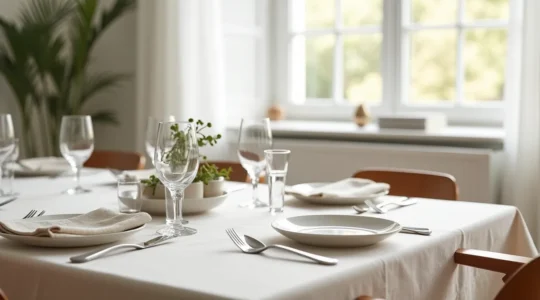 L’art de la table contemporain privilégie le décontracté chic à la rigidité des codes traditionnels. Un chemin de table en lin brut sur une surface nue structure l’espace sans l’alourdir, créant une zone de mise en scène centrale tout en laissant apparaître le matériau de la table. La largeur idéale d’un chemin se situe entre 40 et 50 cm pour une table standard : suffisamment généreux pour accueillir le service central, assez étroit pour laisser place aux assiettes de chaque côté.
